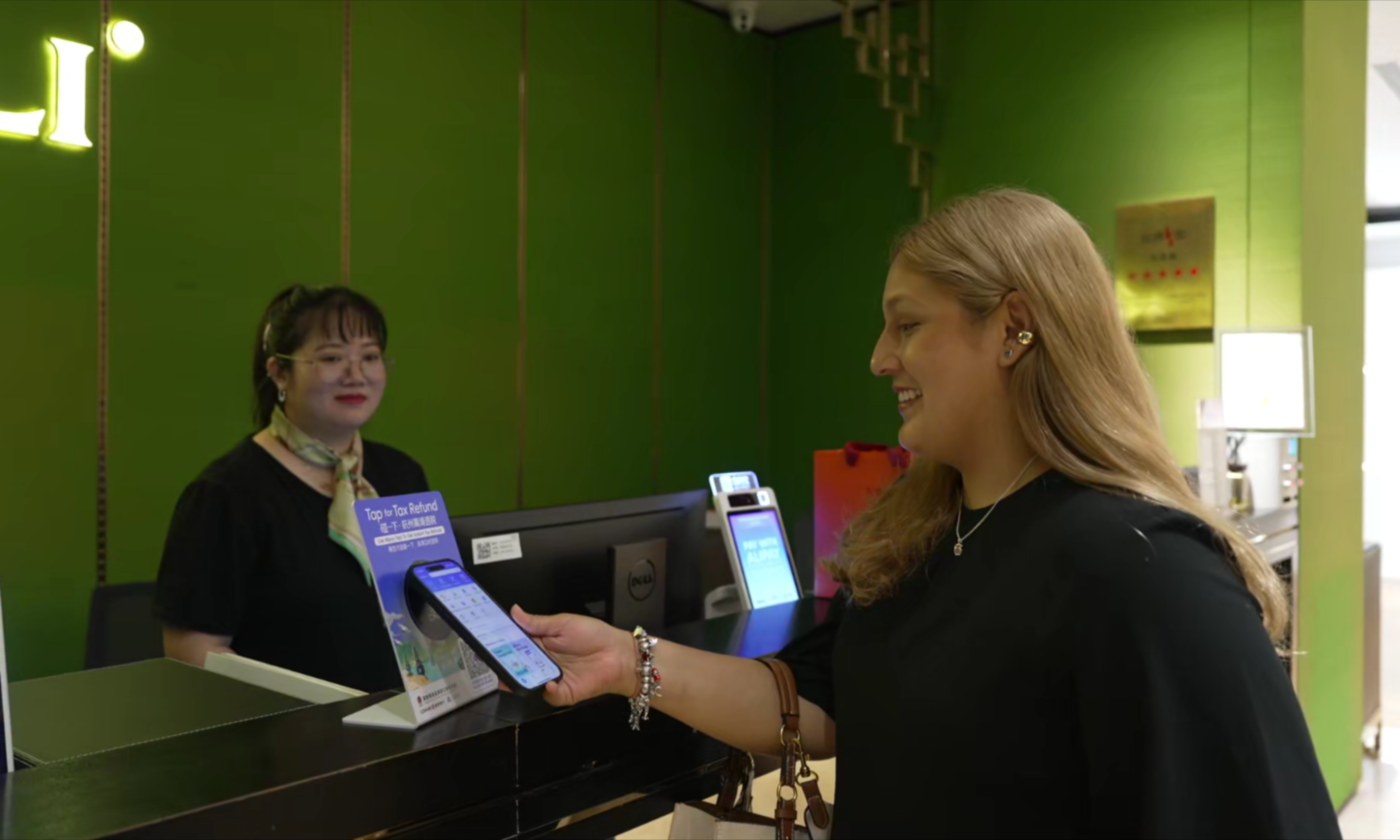 “这是我去了那么多国家旅行之后,所遇到的最好的退税服务,很先进、很方便!”日前,在位于杭州市上城区的“一键退税”试点门店万事利丝绸购买了一条丝巾后,来自墨西哥的旅客安德烈亚赞不绝口。