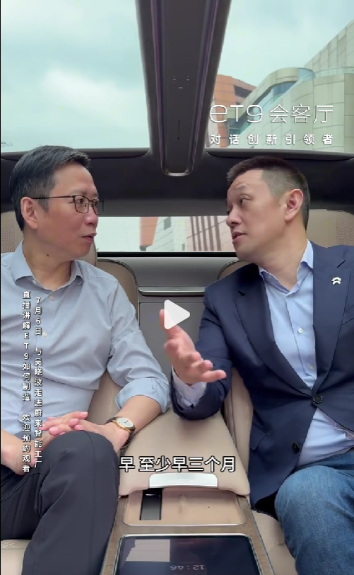 新浪科技讯 7月2日下午消息,蔚来董事长、CEO李斌发布了新一期《ET9会客厅》,与知名财经作家吴晓波进行对话。李斌表示,ET9首先是一款技术旗舰车型,里面搭载全球第一颗车规的5nm智驾芯片,“我们是第一个流片成功,第一个上车量产,比英伟达至少早三个月。”
